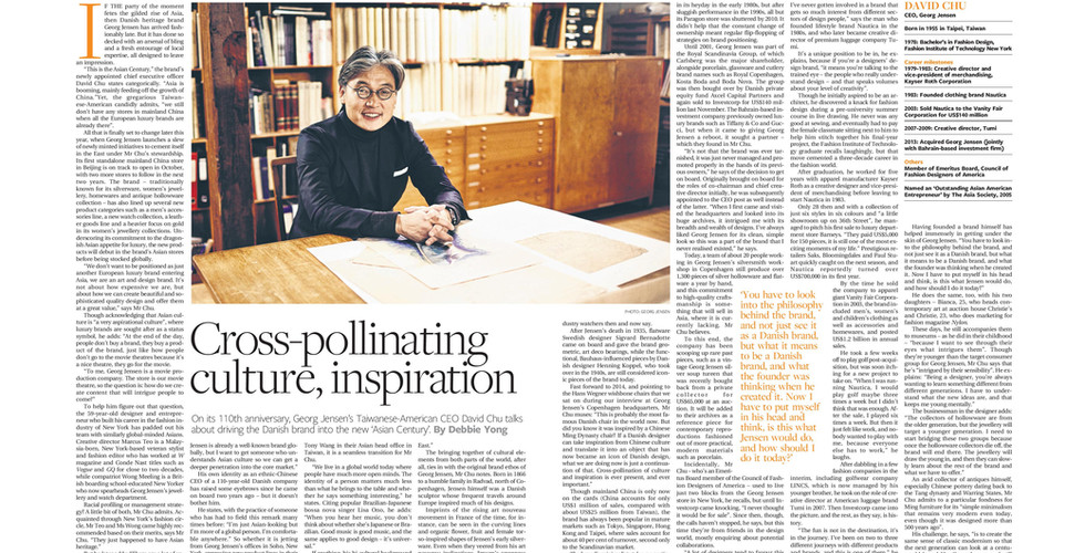 Beyond covering food and travel at The Business Times, I regularly wrote articles across a range of luxury retail and lifestyle topics from beauty to fashion and interior design, including profiles of global CEOs of luxury brands such as Furla, Cartier and Georg Jensen for our newspaper's prestigious The Raffles Conversation column.